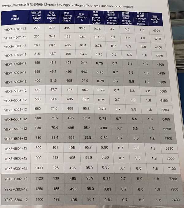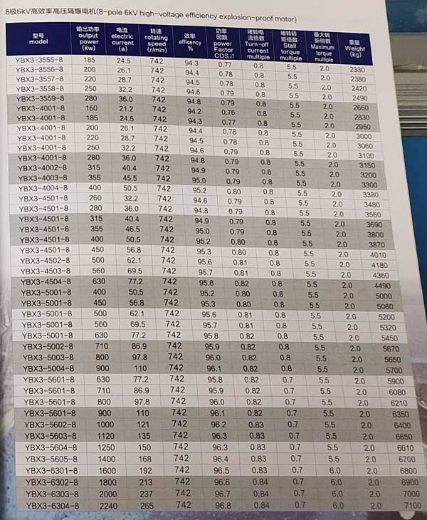 YBX3系列高壓隔爆型三相異步電動機參數表