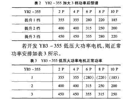 可以看出,到目前為止,還沒(méi)有低壓大功率YB3—355電機(jī)推出,但YB2—355提升3檔功率與YB3—355正常功率非常吻合,功率上替代是沒(méi)有問(wèn)題的。加大功率推出前,用戶(hù)需求較大功率電機(jī)則要在YB2—400實(shí)現(xiàn)或在YB3—355完成。