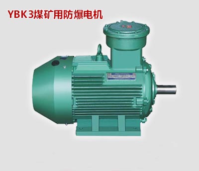 YBK3防爆電機用作煤礦井用(采掘面以下用),電動機的隔爆結構為ExdI Mb。防爆標志為ExdI Mb適用于含有瓦斯或煤塵的煤礦井下采掘工作面。本系列電動機為鼠籠式隔爆型三相異步電動機,外殼防護等級為IP55,冷卻方式為IC411全封閉自扇冷式。