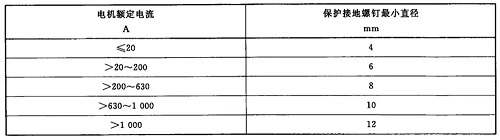 保護接地端子的螺釘和接地導體應有足夠截面,保護接地螺釘最小直徑按表1。